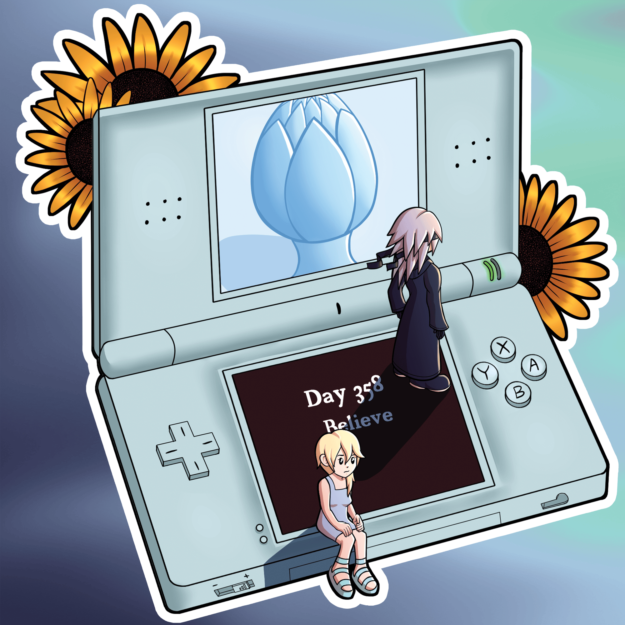 2.5" double-sided acrylic keychain featuring (side one) the Sea Salt Trio and (side two) Riku and Namine! Also includes rose gold heart clasp!