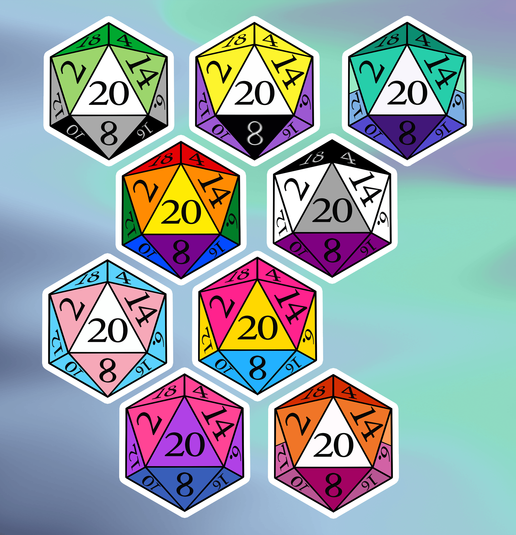 let people know you love D&D and you're queer - AT THE SAME TIME! These die-cute stickers are glossy, weather-proof, vinyl, and approximately~ 1.5 inches