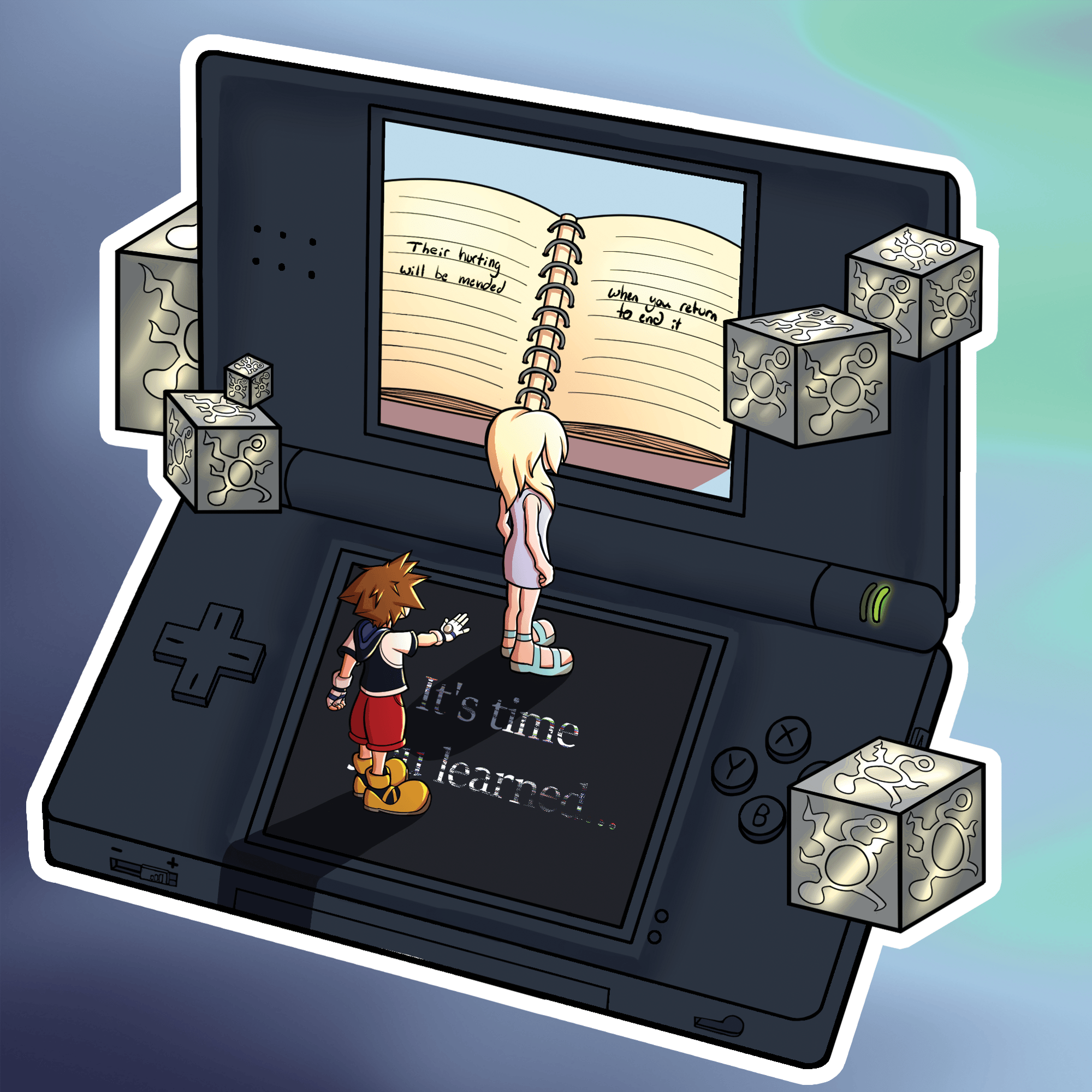 2.5" double-sided acrylic keychain featuring (side one) Data Sora and Data Namine and (side two) young Data Sora and Data Riku! Also includes silver star clasp!